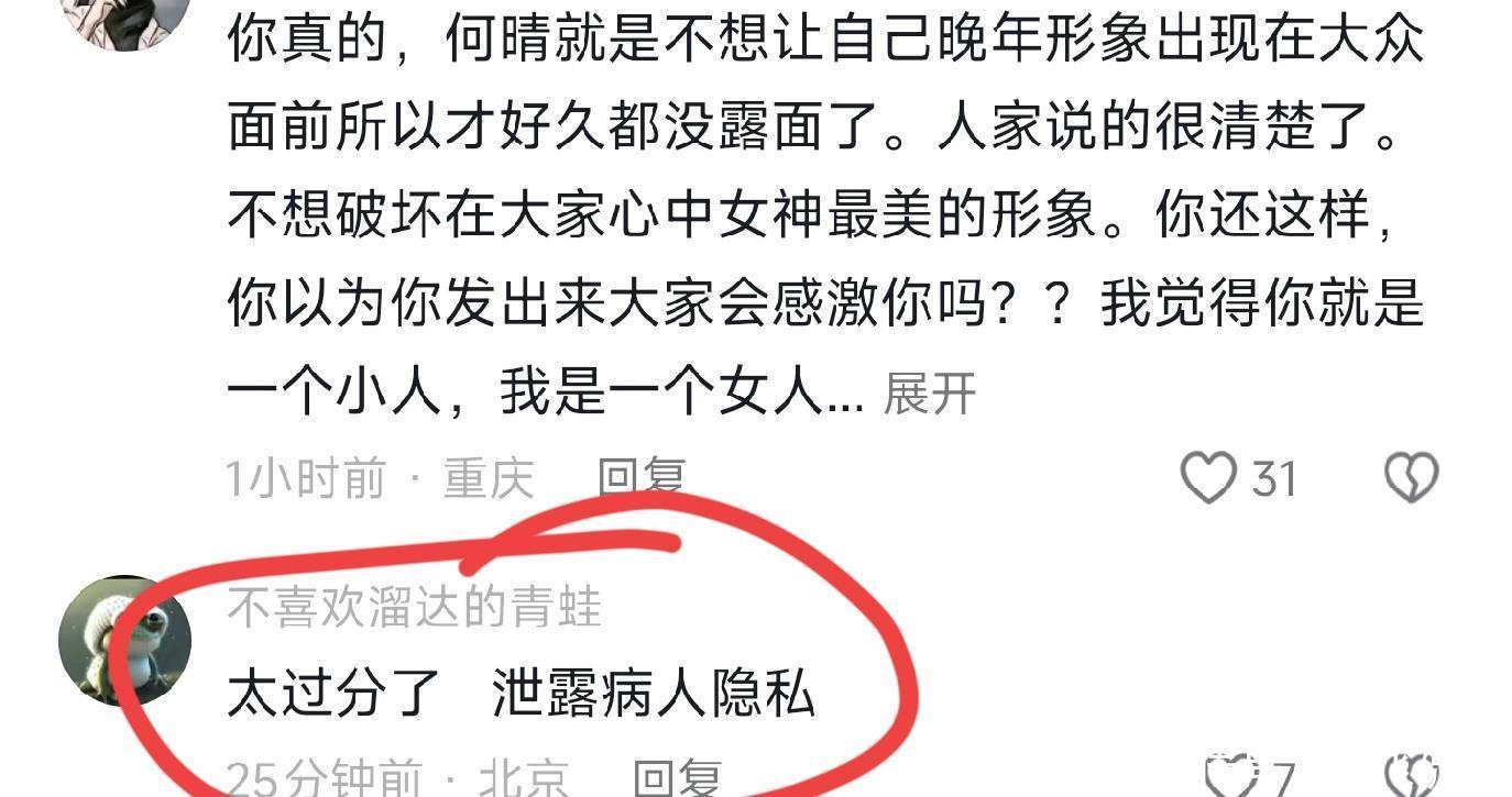 其实王明强的这个做法确实欠妥,也许是他出于怀念,出于心疼,但是也不能把何晴最不想让大家看到的她,在公共平台发出来,一生落落大方,即使已经走了,但是让她把最后的美丽留给大家!
