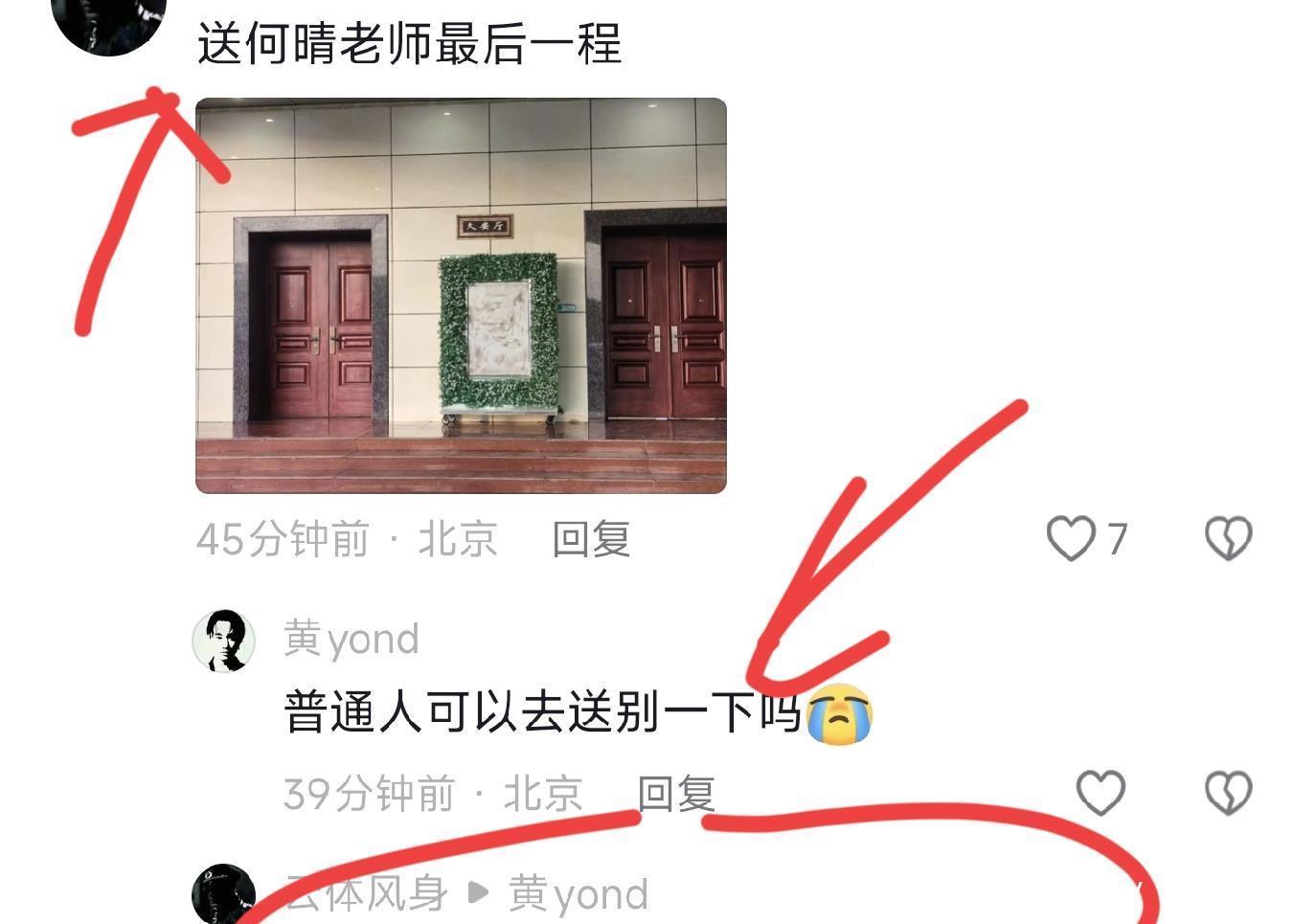尽管以前98版水浒传的制片主任昨天说过何晴去世告别仪式不公开对外吊唁,但是从许亚军的留言区看到,很多网友已经到达了现场,可见在人潮涌动的现场,除了何晴的直系亲属外,也有慕名而来给何晴送行的网友