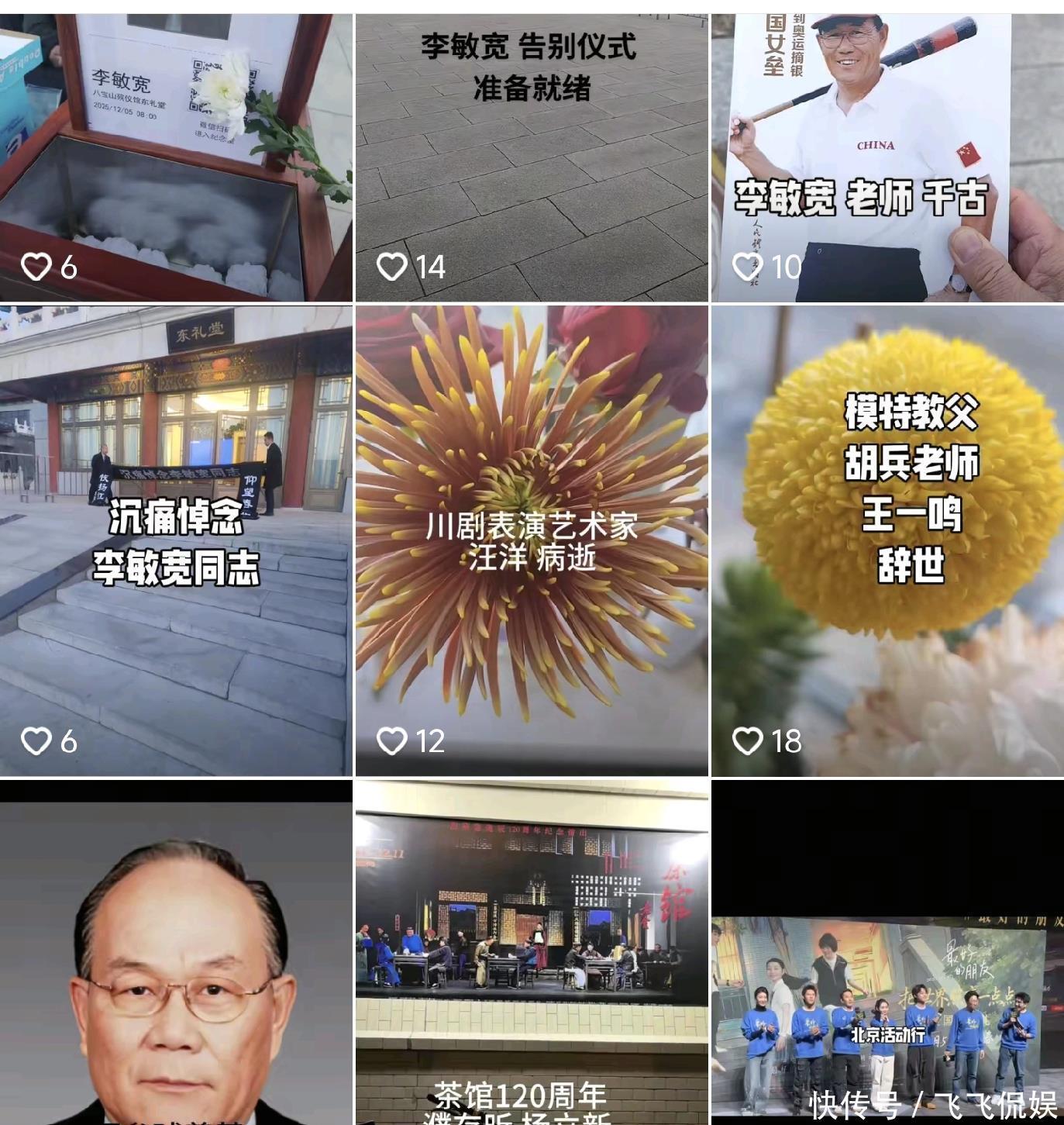 从他的账号里面的内容发现以前也发过很多演员以及社会各界认识去世后的一些视频